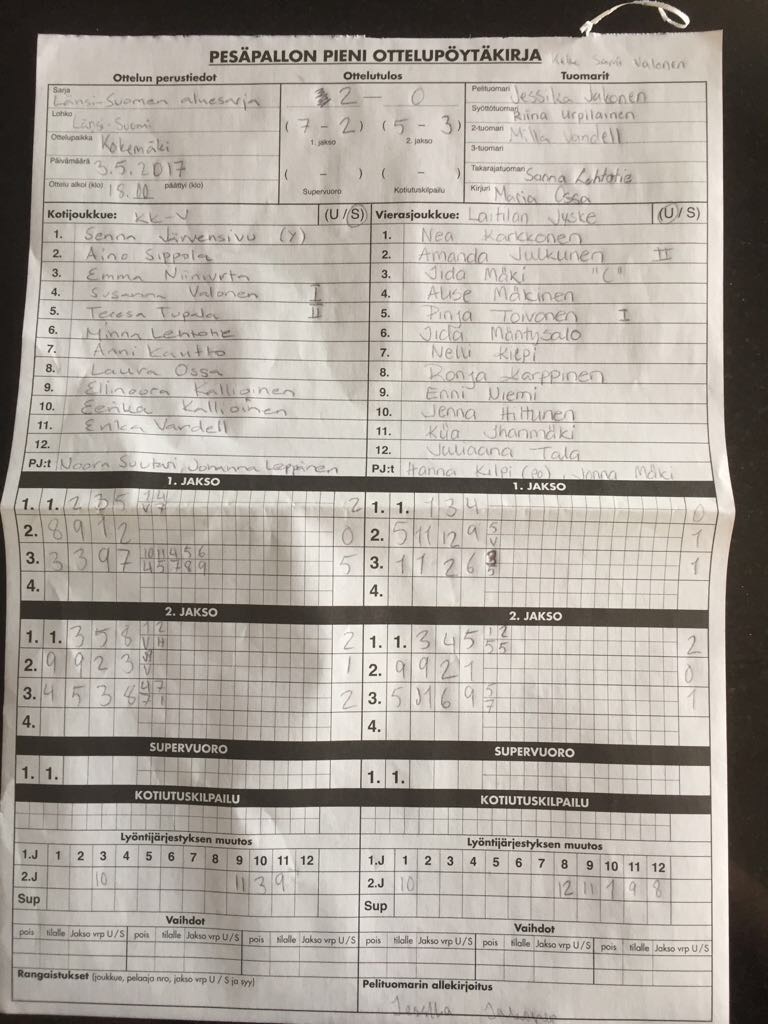 | 3.7.2017 18:00 | Pesäkarhut E06 | Lajy | 2-0 (8-2, 14-7) | näytä | |