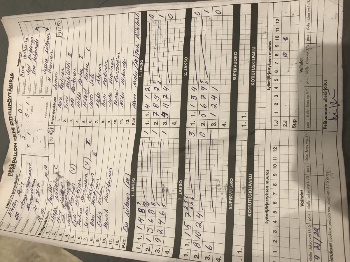 | 6.8.2017 13:30 | KPL | Paukku | 2-0 (11-0, 11-3) | ||