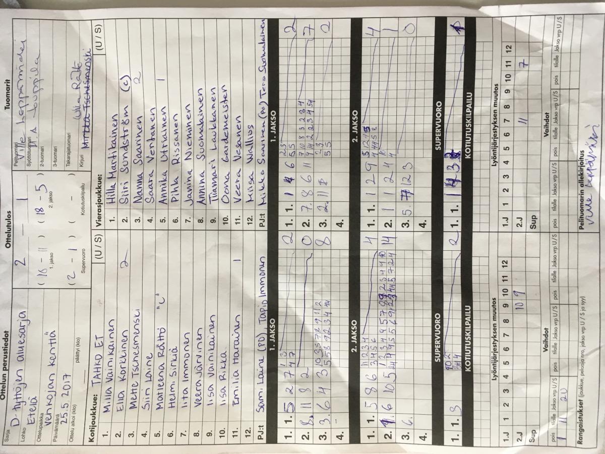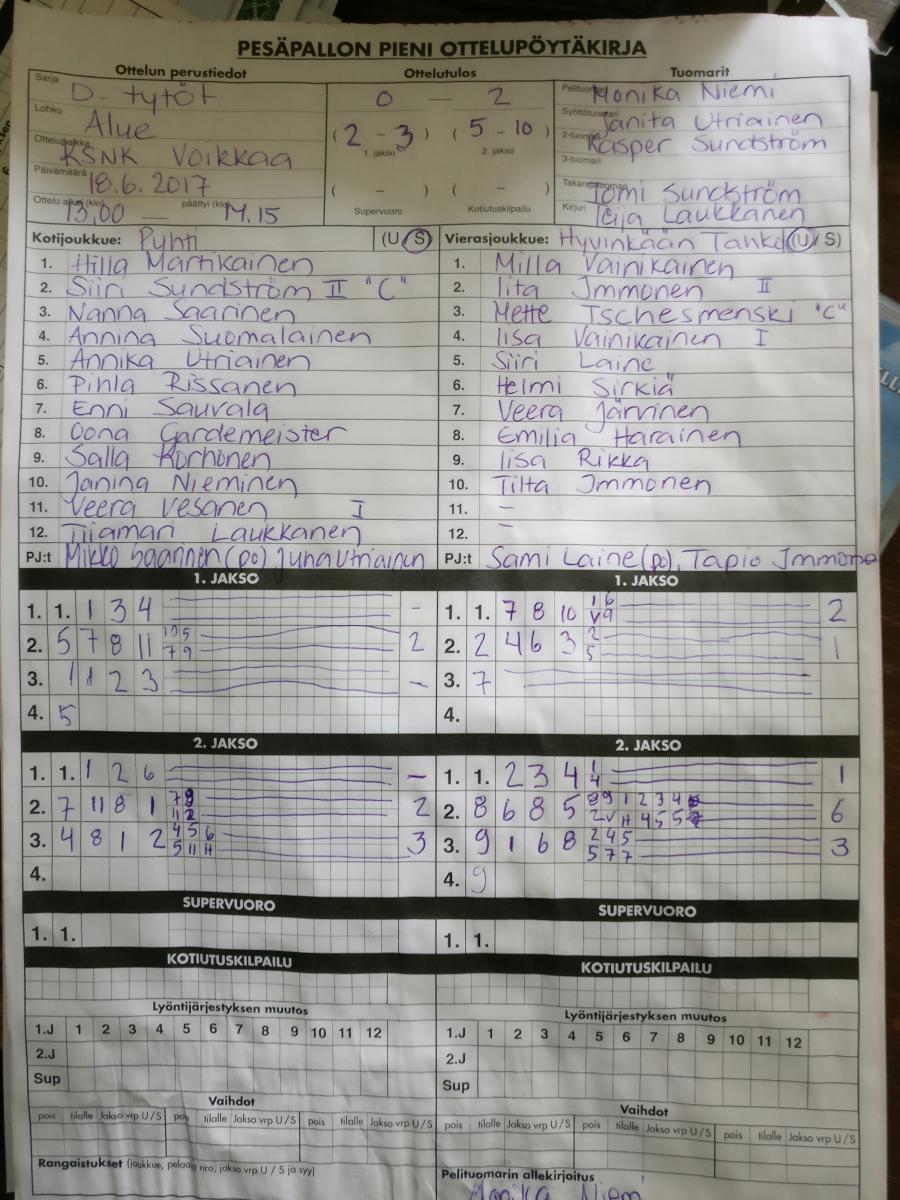 | 18.6.2017 13:00 | Puhti ET | Tahko ET | 0-2 (2-3, 5-10) | näytä | |