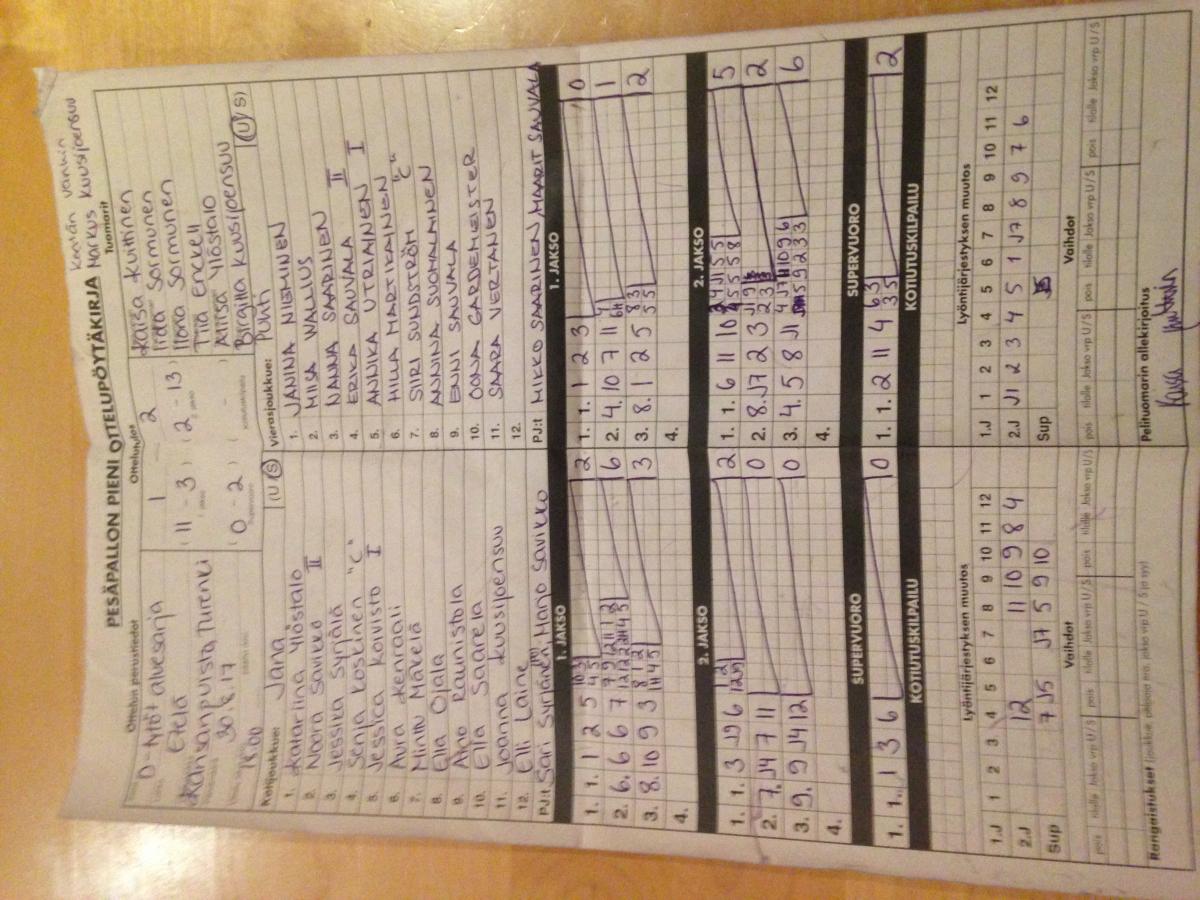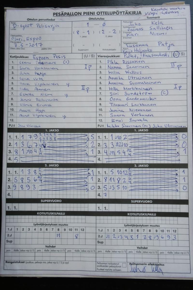 | 5.8.2017 13:00 | Puhti ET | Jana DT | 2-1 (11-5, 1-5, 1-0) | näytä | |