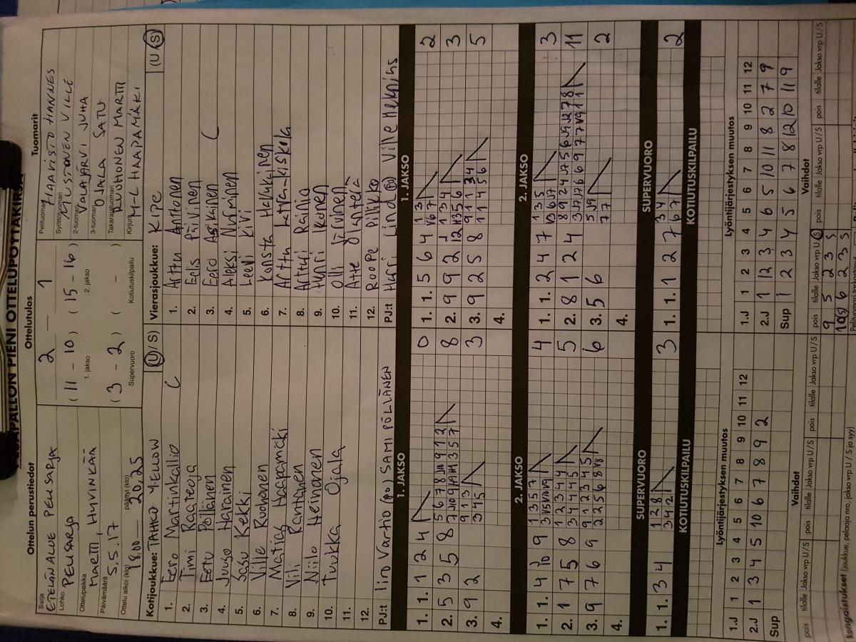 | 5.5.2017 18:00 | Tahko Yellow | Kipe06 White | 2-1 (11-10, 15-16, 3-2) | näytä | |