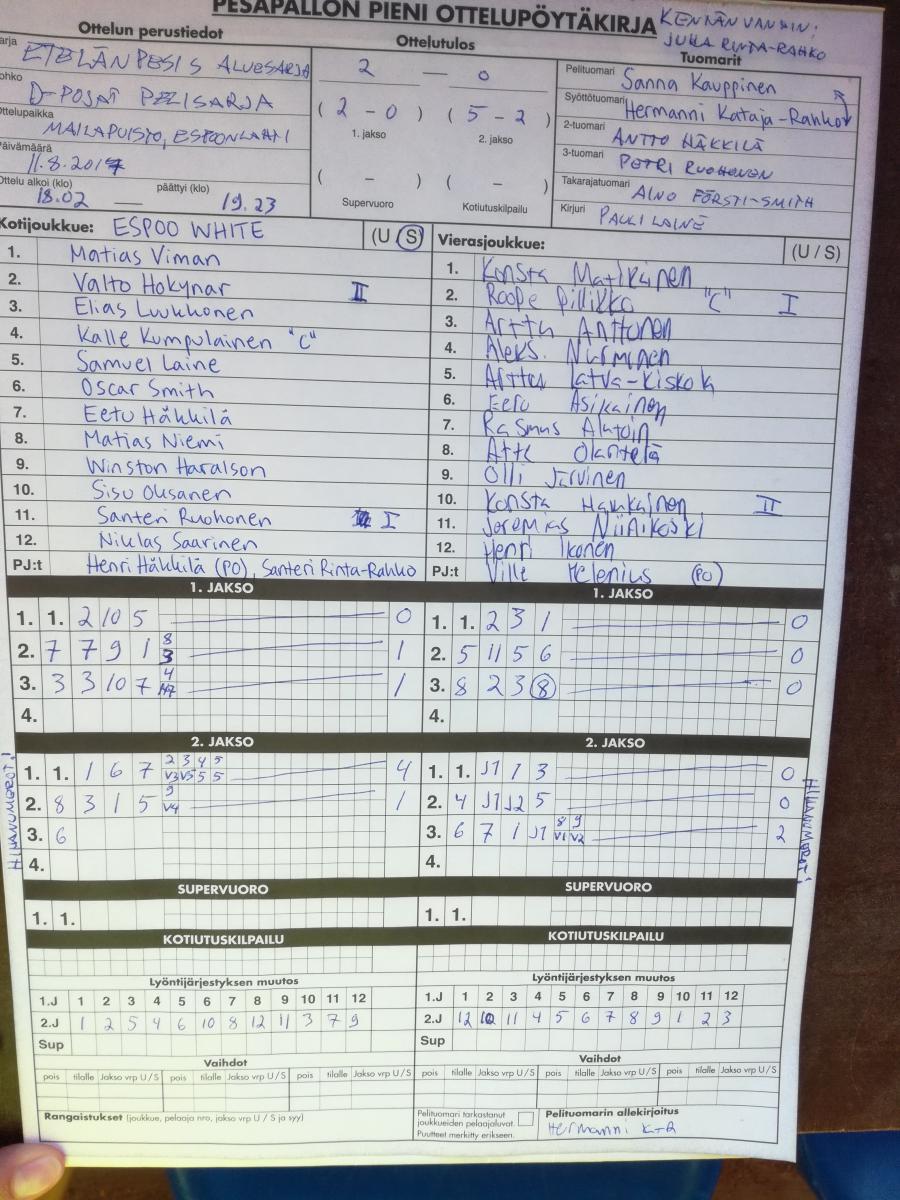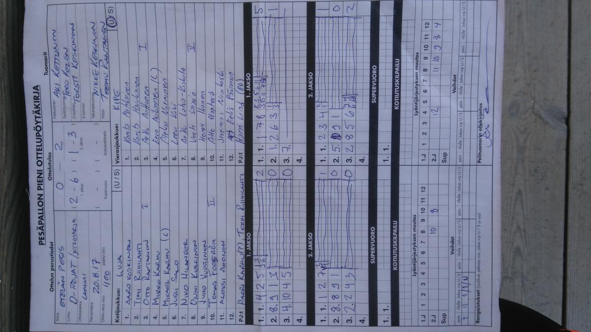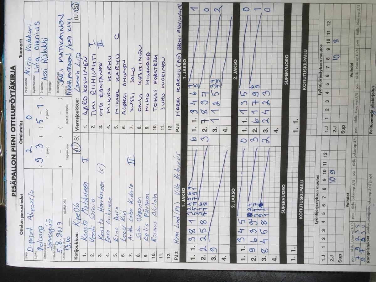 | 8.8.2017 17:30 | Kipe06 White | LMV DP Sininen | 0-2 (4-8, 3-5) | näytä | |