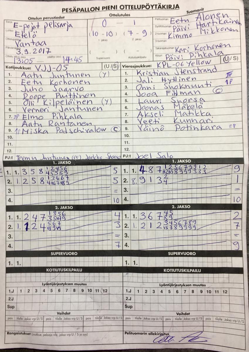 | 3.9.2017 13:00 | VJJ-05 | KPL-06 Yellow | 0-1 (10-10, 7-9) | näytä | |
