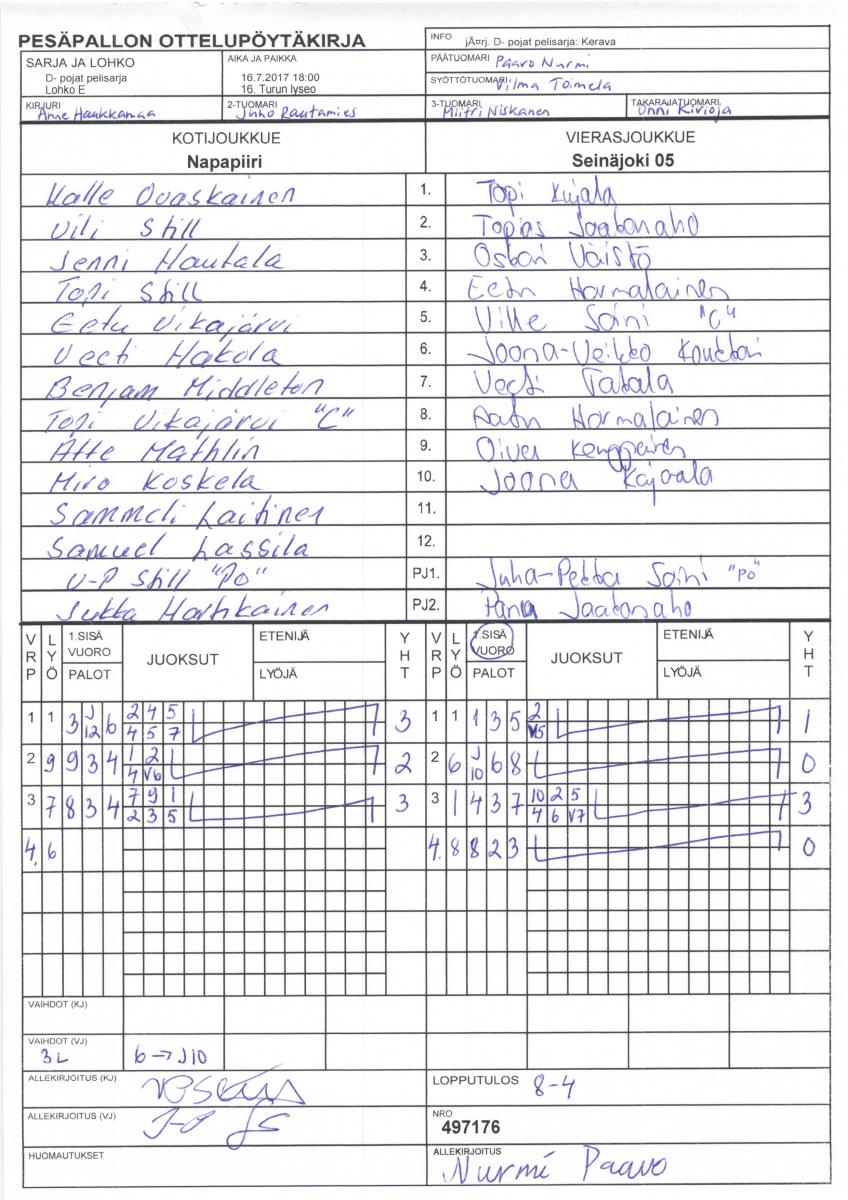 | 16.7.2017 18:00 | 16. Turun lyseo | Napapiiri | Seinäjoki 05 | 8-4 | näytä |