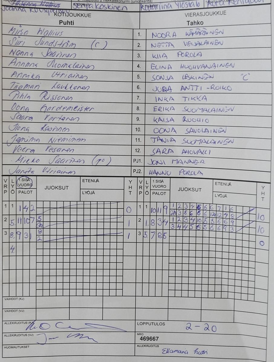 | 9.6.2017 15:00 | 2. Kisapuisto 2 hiekkatekonurmi (juniorikenttä) | Puhti | Tahko | 2-20 | näytä |