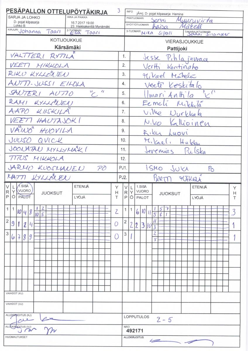 | 21.7.2017 13:00 | 3. Kupittaa kivituhka 1 | Kankaanpää | Pattijoki | 3-8 | näytä |