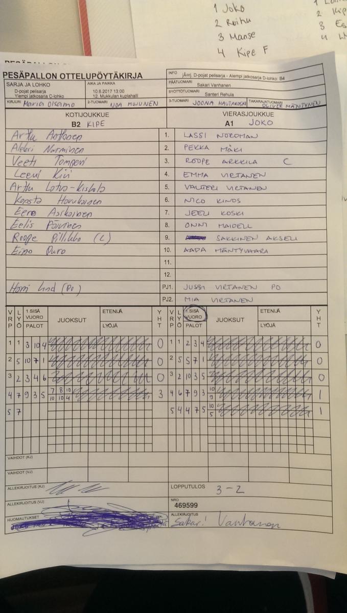 | Ylempi jatkosarja C-lohko | 11.6.2017 08:30 | 4. Kisapuisto 4 jalkopallonurmi | JoKo | Roihu | Kipe06 |
