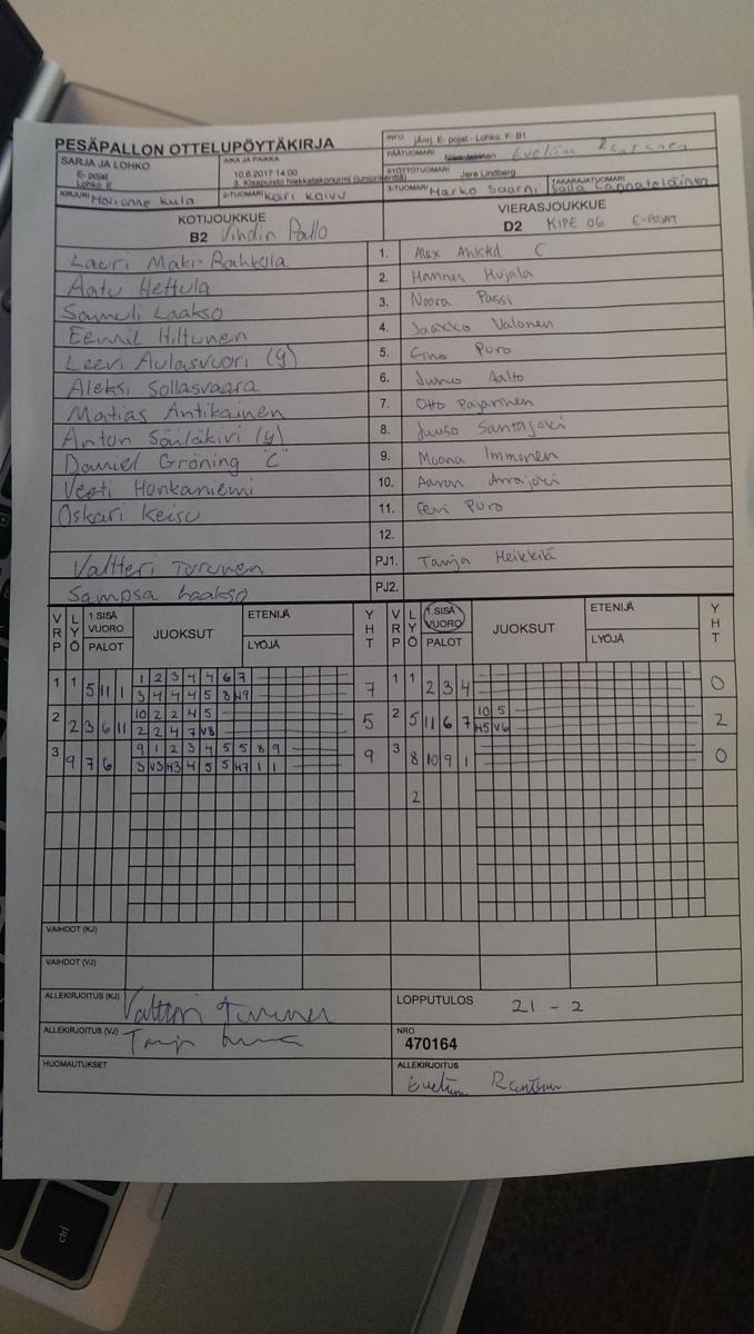 | E- pojat - Lohko. B | 9.6.2017 18:30 | 7. Laune 1 | RP-67 | PöU | Kipe06 |