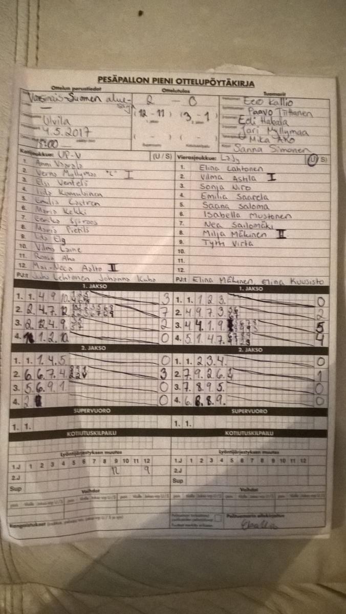 | 2.8.2017 | Laitila | Ulvila | 1-2 (10-4, 2-16, 0-1) | ||