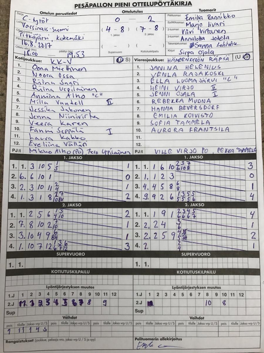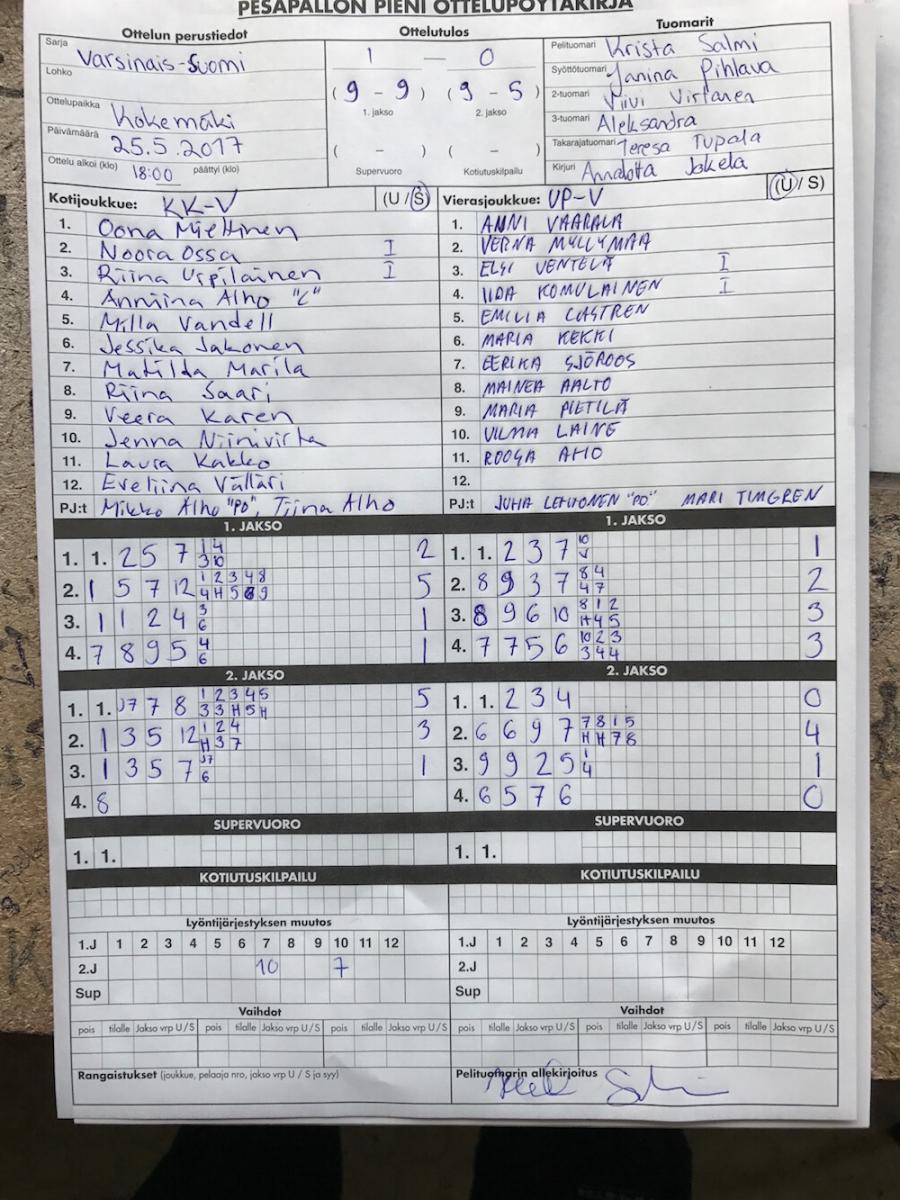 | 17.5.2017 | Mynämäki | Kokemäki | 0-2 (1-16, 1-7) | ||