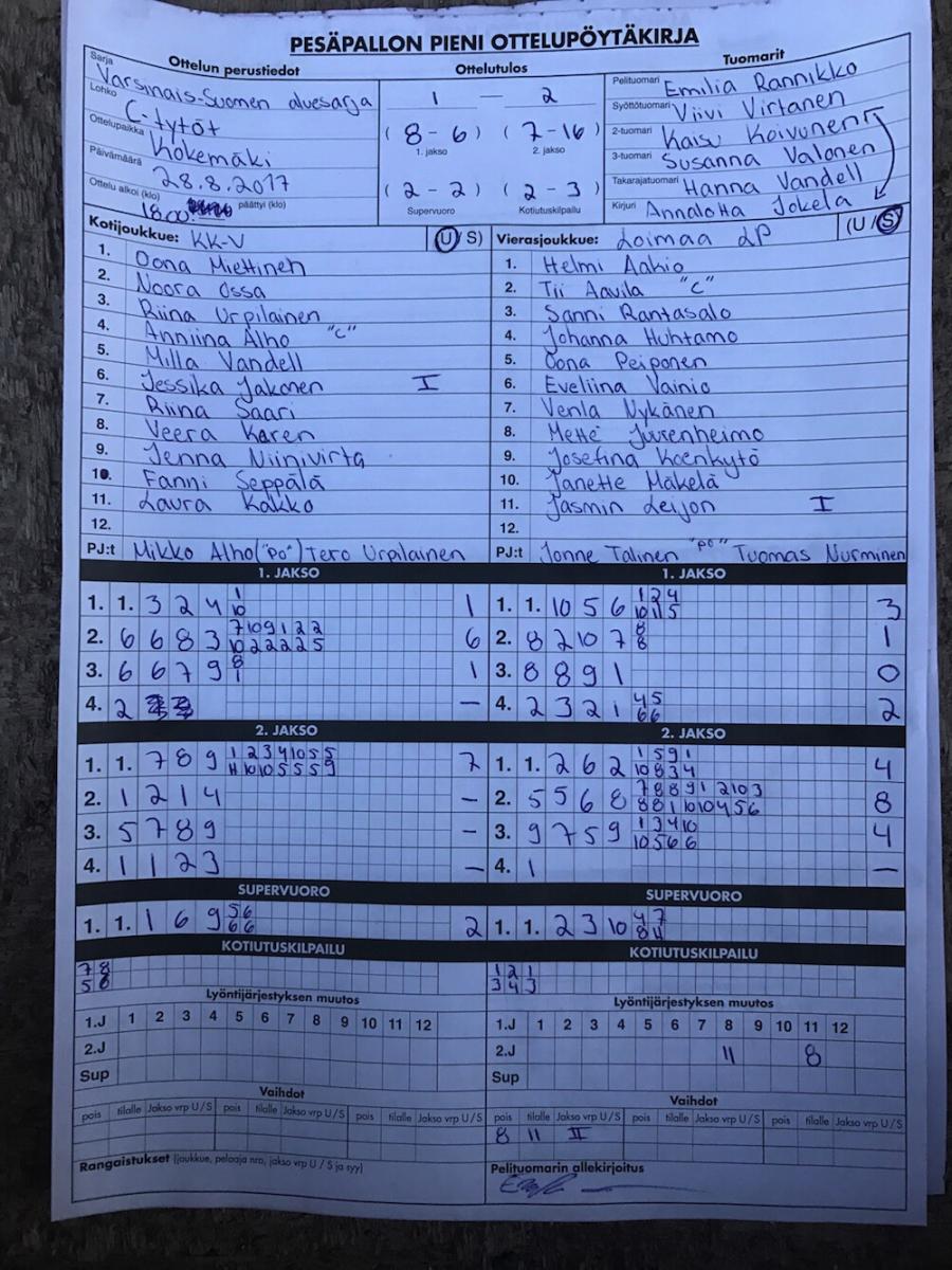 | 28.8.2017 | Kokemäki | Loimaa | 1-2 (8-6, 7-16, 2-2, 2-3) | näytä | |