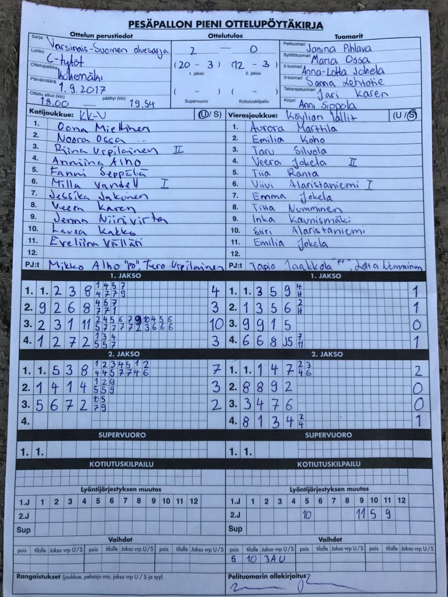| 4.9.2017 | Laitila | Kokemäki | 0-2 (0-20, 2-13) | ||