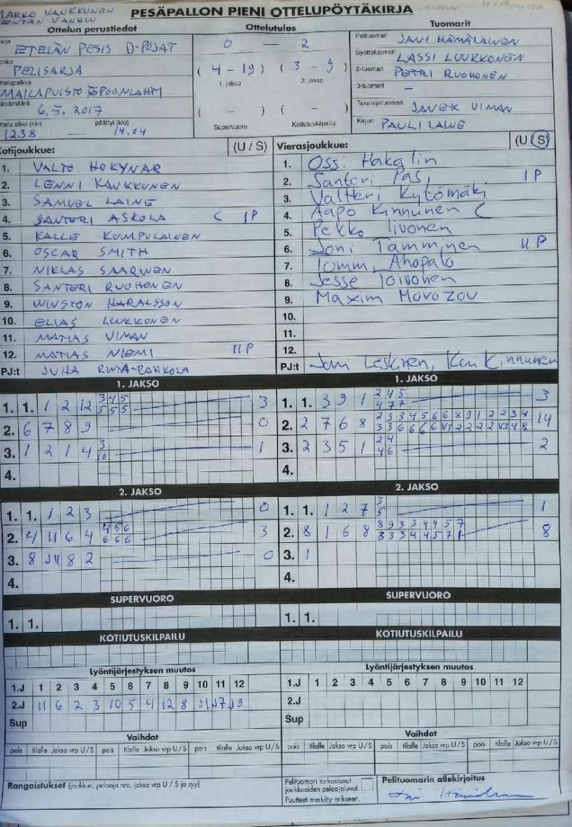 | 6.8.2017 13:30 | KPL | Paukku | 2-0 (11-0, 11-3) |