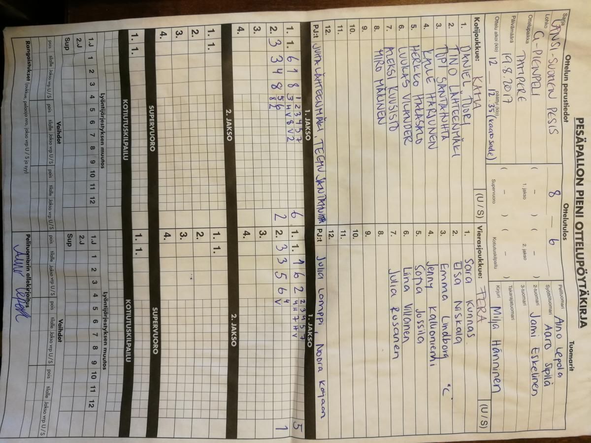 | 19.8.2017 11:00 | Fera G1 | UP-V G10 | 9-6 | näytä | |