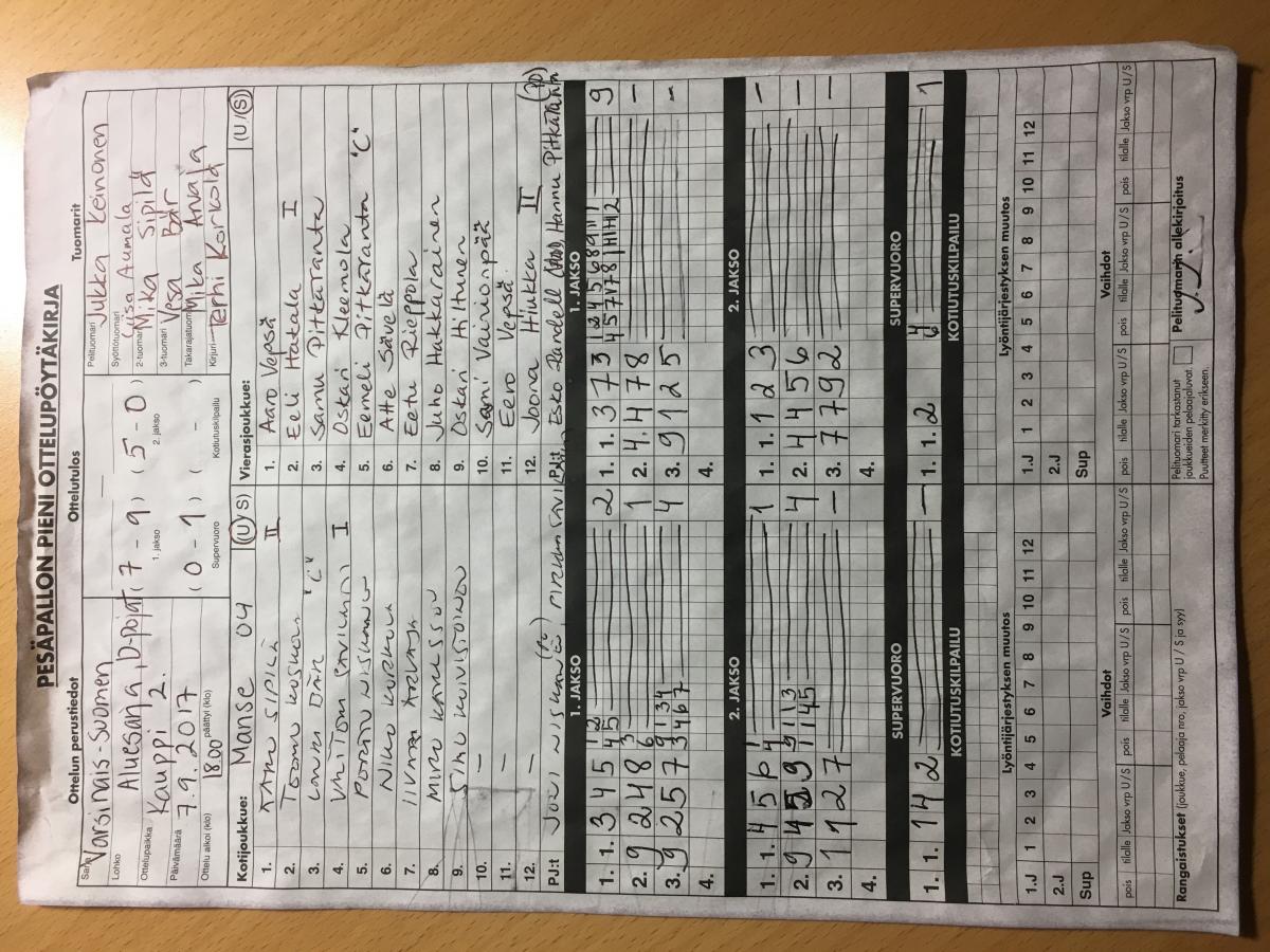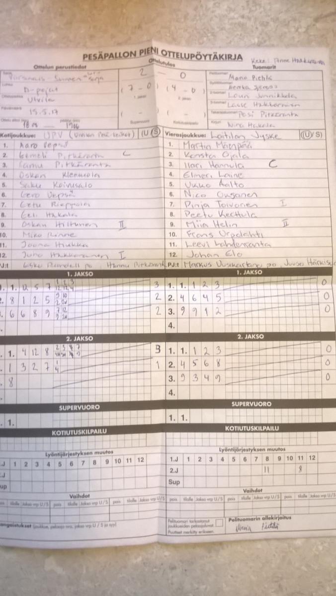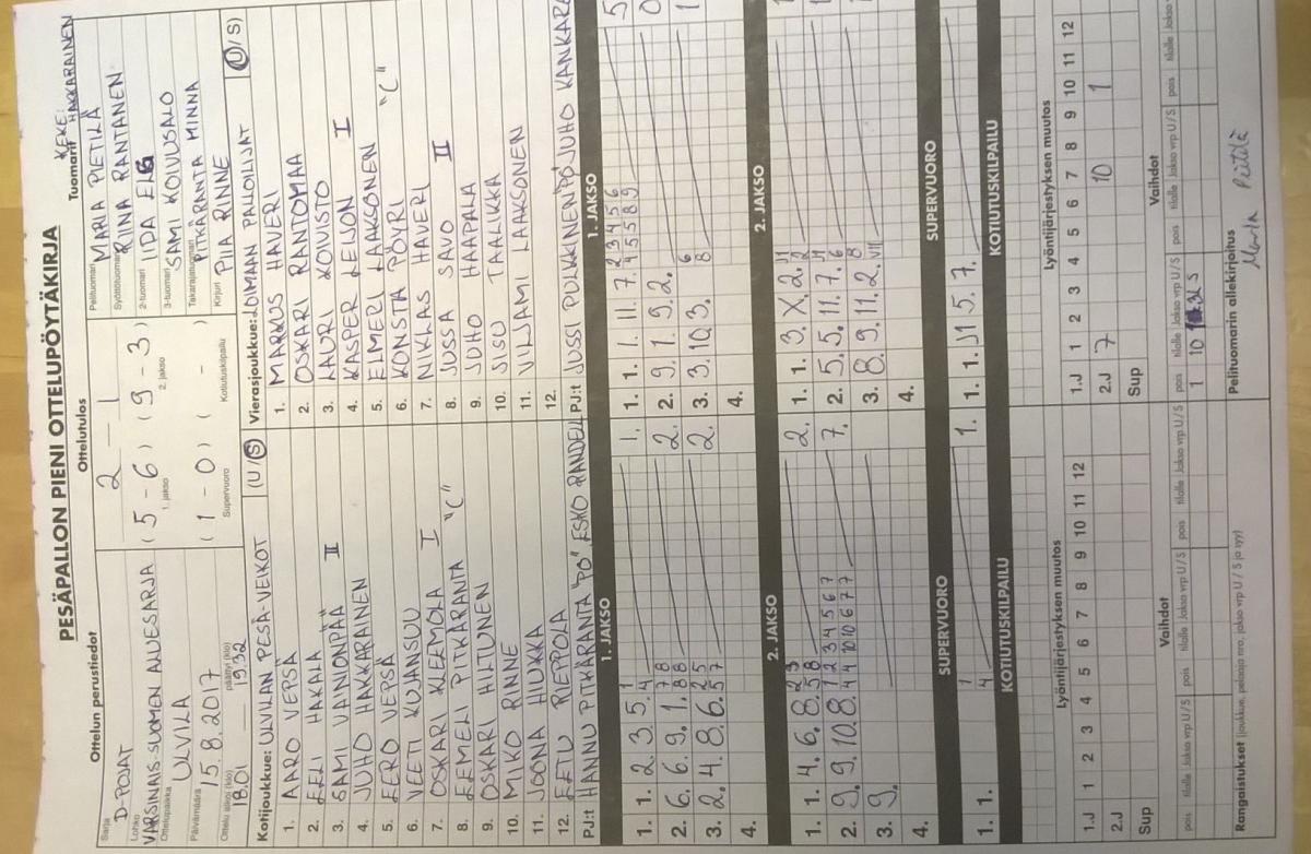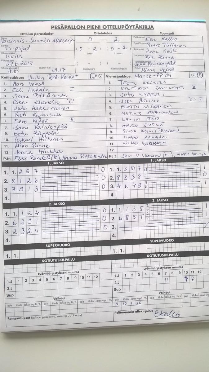 | 1.8.2017 | Köyliö | Ulvila | 2-1 (1-14, 7-3, 3-2) | ||