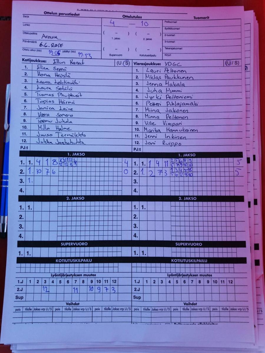 | 28.6.2017 20:00 | Suosmeren kenttä, Ulvila | YDGC | Team Kimble | 2-2 | näytä |