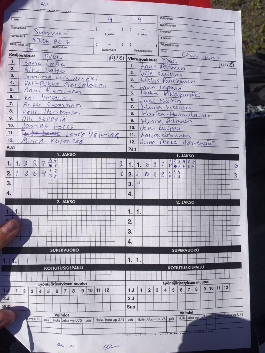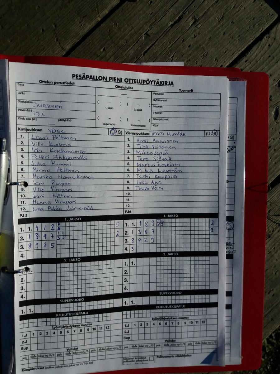 | Ylempi jatkosarja | 18.7.2017 18:00 | Aravan kenttä, Pori | Team Kimble | Tiikerit | YDGC |