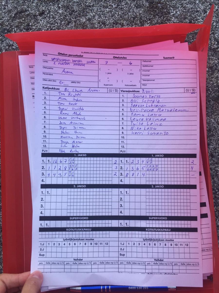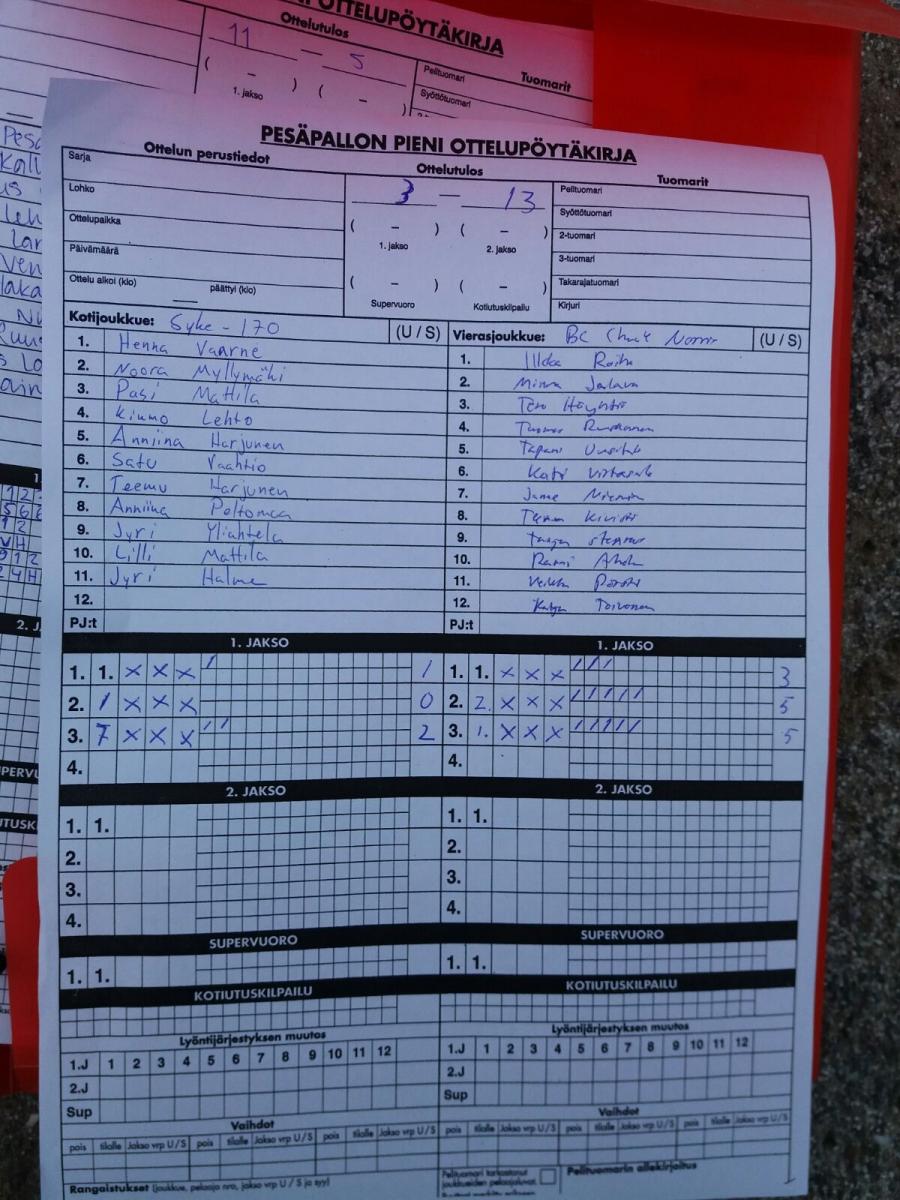 | Alempi jatkosarja | 15.8.2017 19:00 | Aravan kenttä, Pori | Tivoli | Syke 170 | BC Chuck Norris |