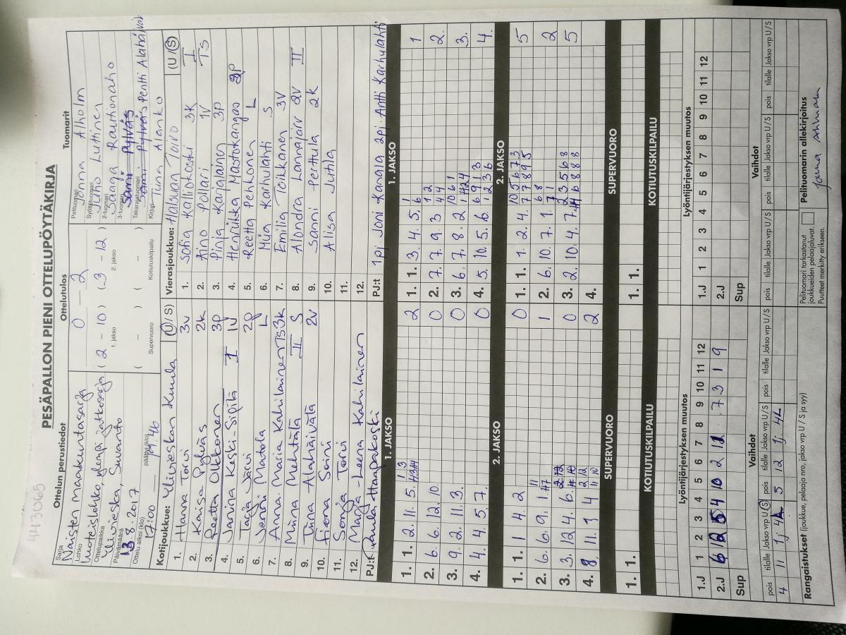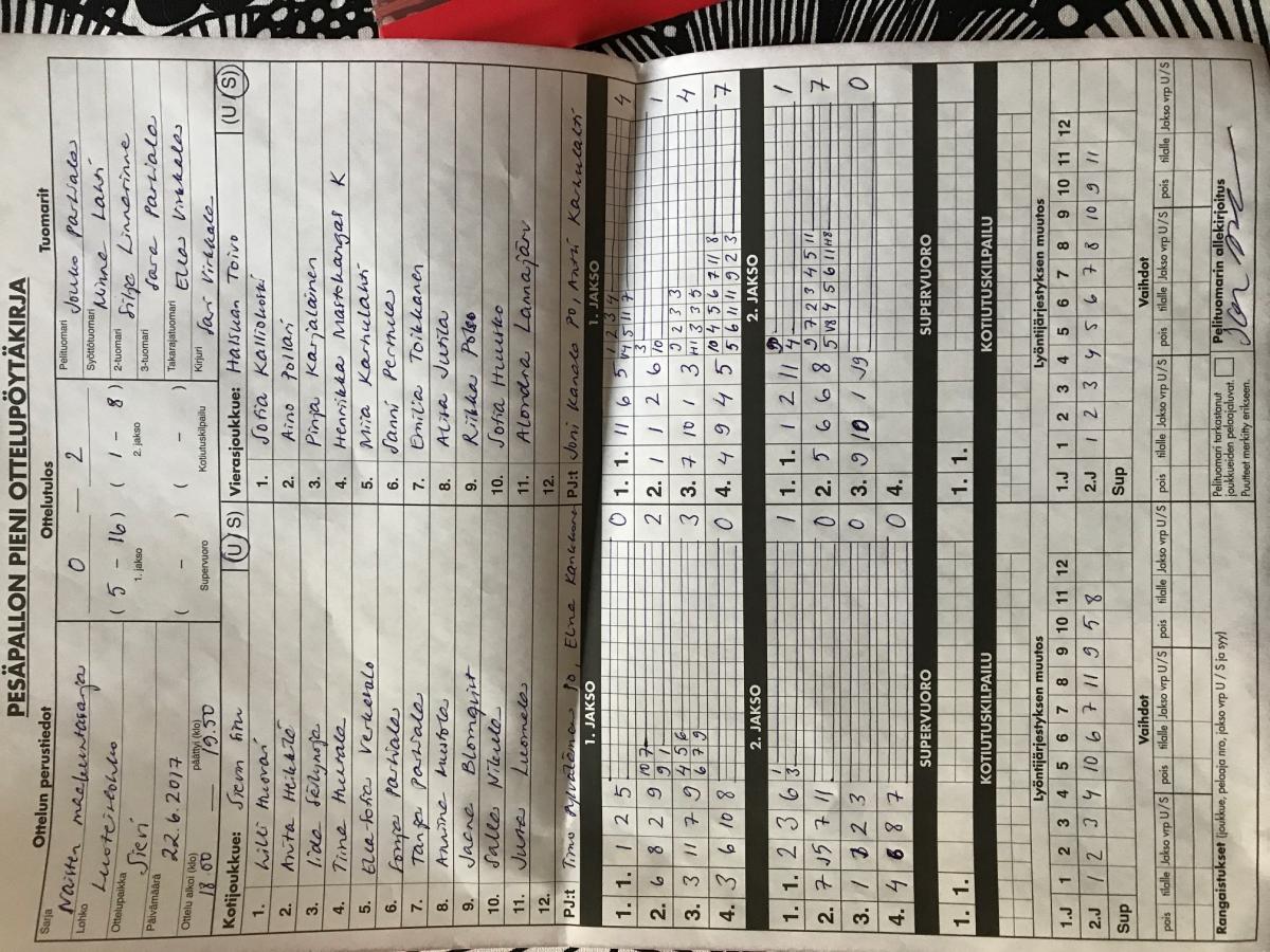 | 22.7.2017 | Halsua | Nivala | 2-0 (19-1, 13-1) | näytä | |