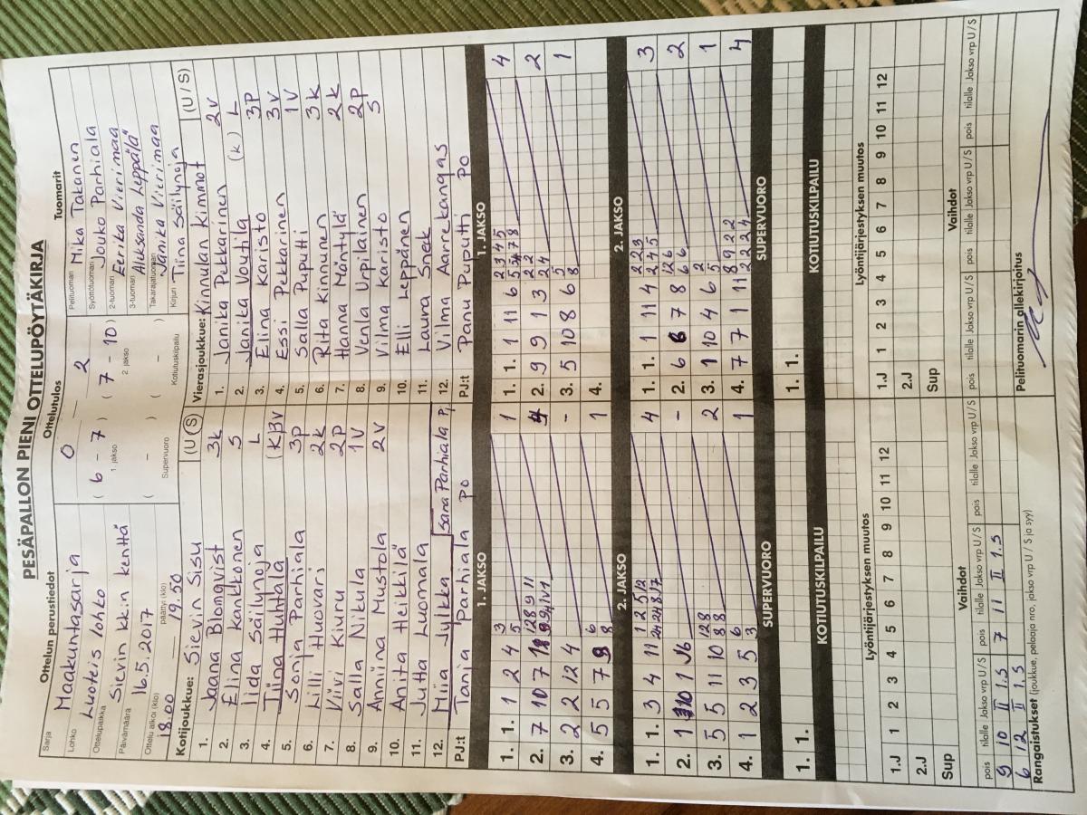 | 16.5.2017 | Sievi | Kinnula | 0-2 (6-7, 7-10) | näytä | |