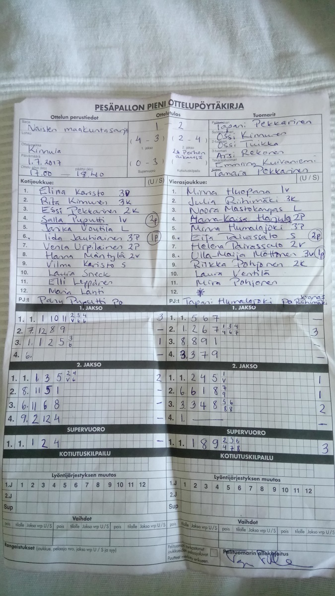 | 30.6.2017 | Kinnula | Haapajärvi | 0-2 (0-2, 7-14) | ||