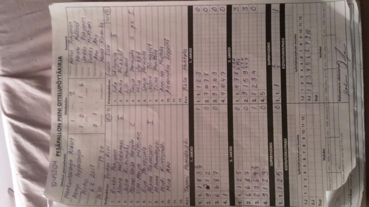 | 12.8.2017 | Kinnula | Perho | 2-1 (9-5, 3-5, 1-0) | näytä |