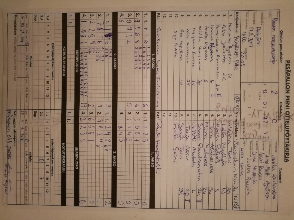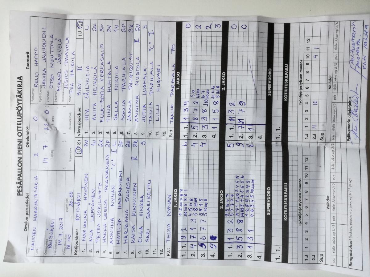 | 14.7.2017 | Reisjärvi | Sievi | 2-0 (14-7, 22-0) | näytä |