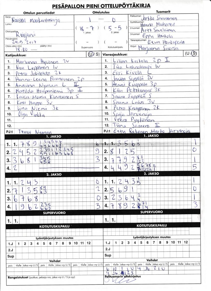 | 11.7.2017 | Reisjärvi | Haapajärvi | 2-0 (5-1, 14-3) | näytä | |