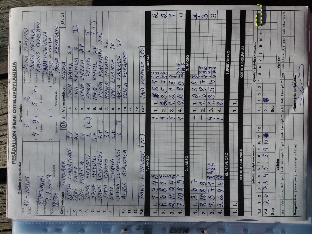 | 14.7.2017 | Toholampi | Halsua | 0-2 (1-7, 3-12) | näytä |