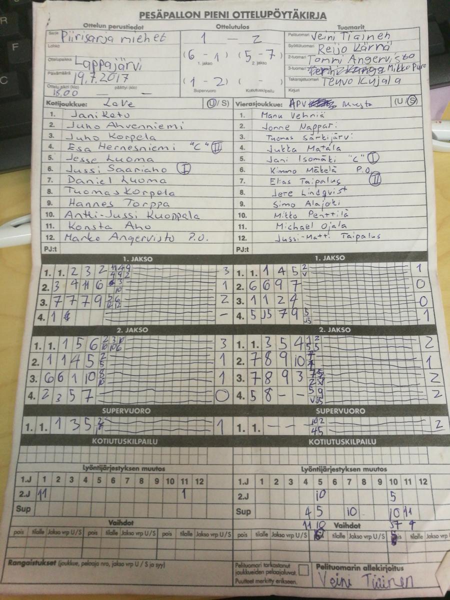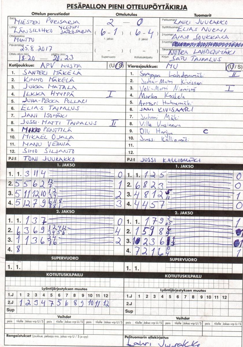 | 3.8.2017 18:00 | APV keltainen | APV musta | 0-1 (2-2, 2-3) | näytä | |
