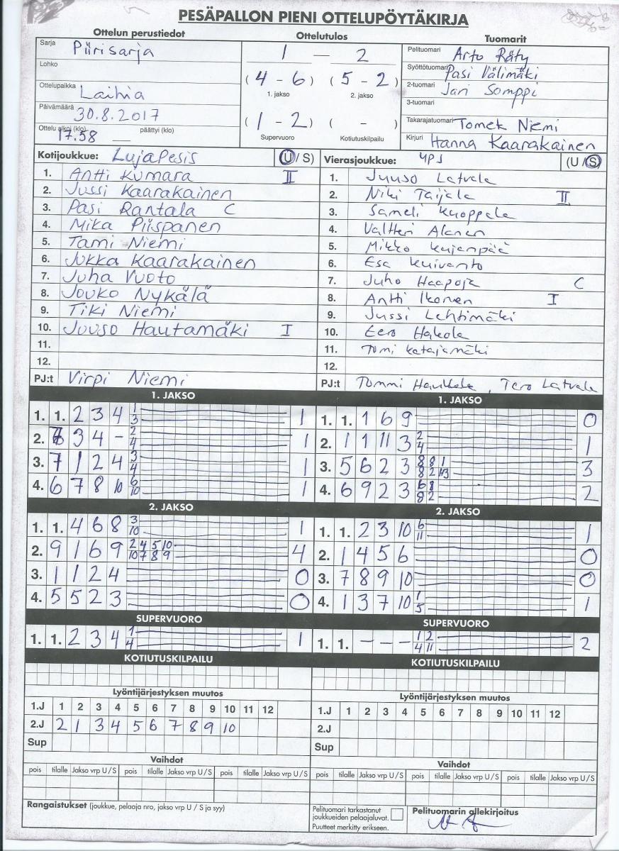 | 3.8.2017 18:00 | YPJ2 | LaVe | 2-0 (8-2, 4-3) | ||