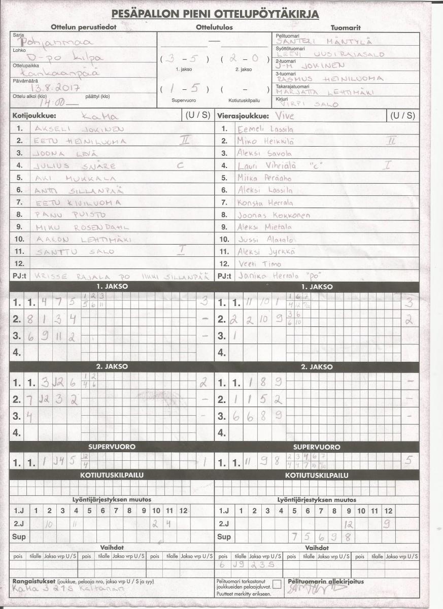 | 7.8.2017 18:00 | KaMa | SMJ03 musta A | 0-2 (3-5, 5-12) | näytä | |