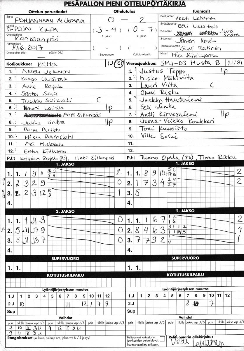 | 14.6.2017 18:00 | KaMa | SMJ03 musta B | 0-2 (3-4, 0-7) | näytä | |