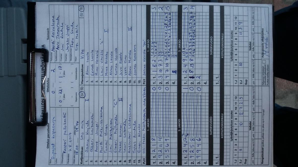 | 7.8.2017 18:30 | SMJ mix | ViVe | 0-2 (0-22, 1-17) | näytä |