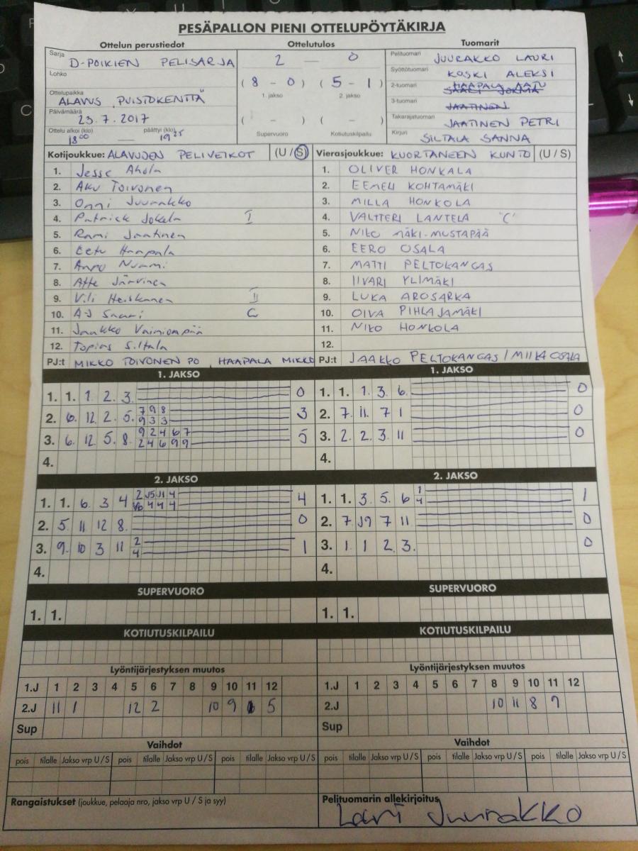 | 1.8.2017 18:00 | SMJ04 | APV | 1-0 (2-2, 12-7) | näytä | |