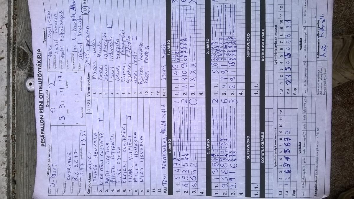 | 1.8.2017 18:00 | SMJ03 punainen | KuKu | 2-1 (4-6, 12-8, 4-0) | ||