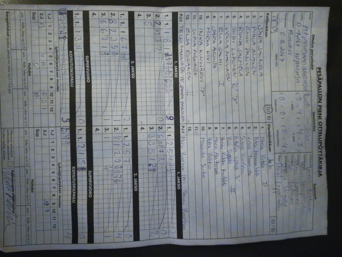 | 24.8.2017 18:00 | JaJa | Räpsä | 0-1 (4-4, 9-14) | näytä |