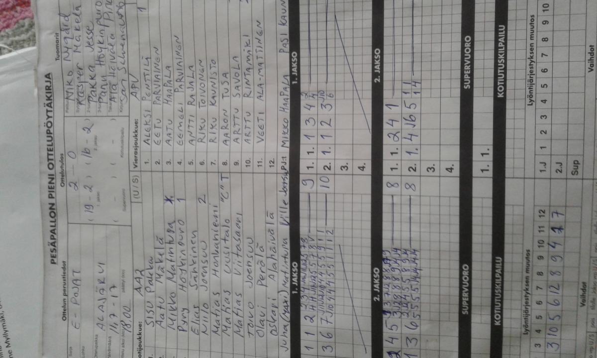 | 20.5.2017 18:00 | SMJ05 punainen | APV | 2-0 (15-3, 43-2) | näytä | |