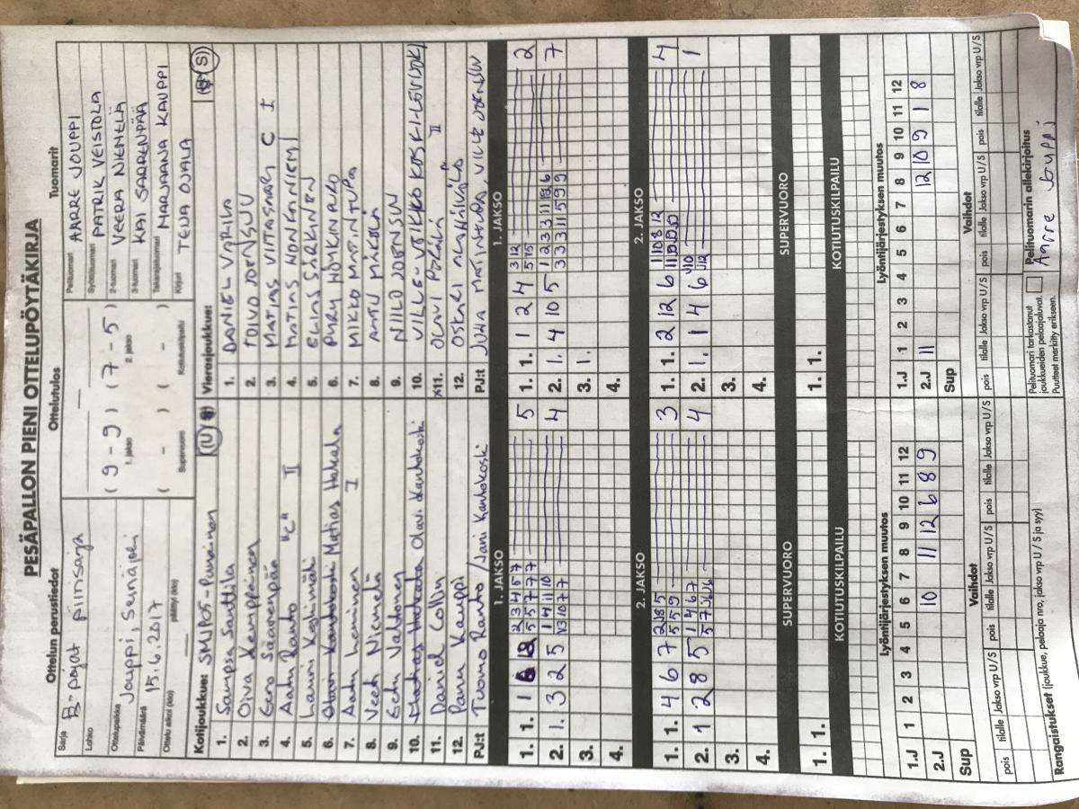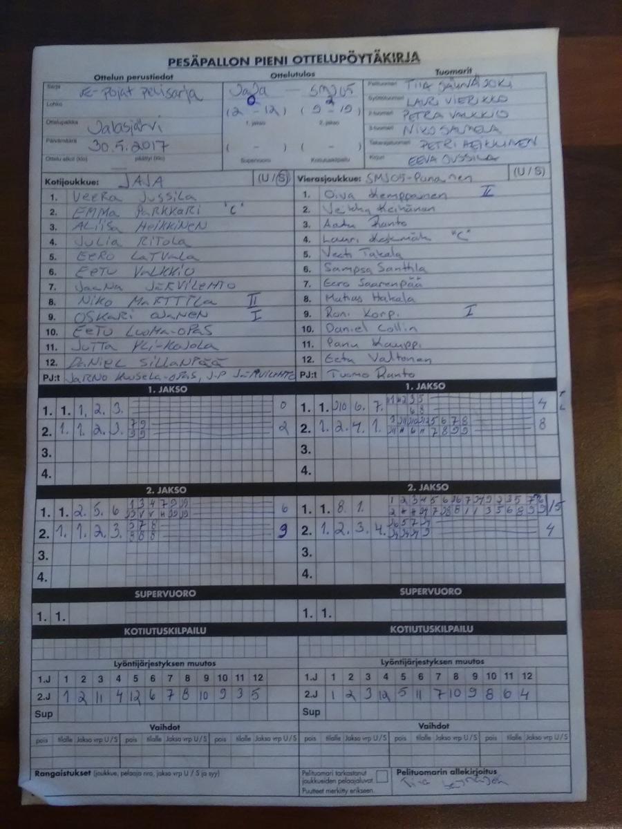 | 20.5.2017 18:00 | JaJa | SMJ05 punainen | 0-2 (2-12, 9-19) | näytä | |
