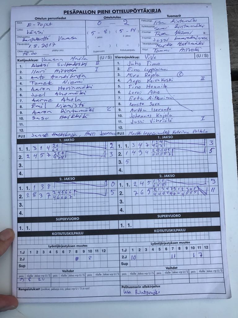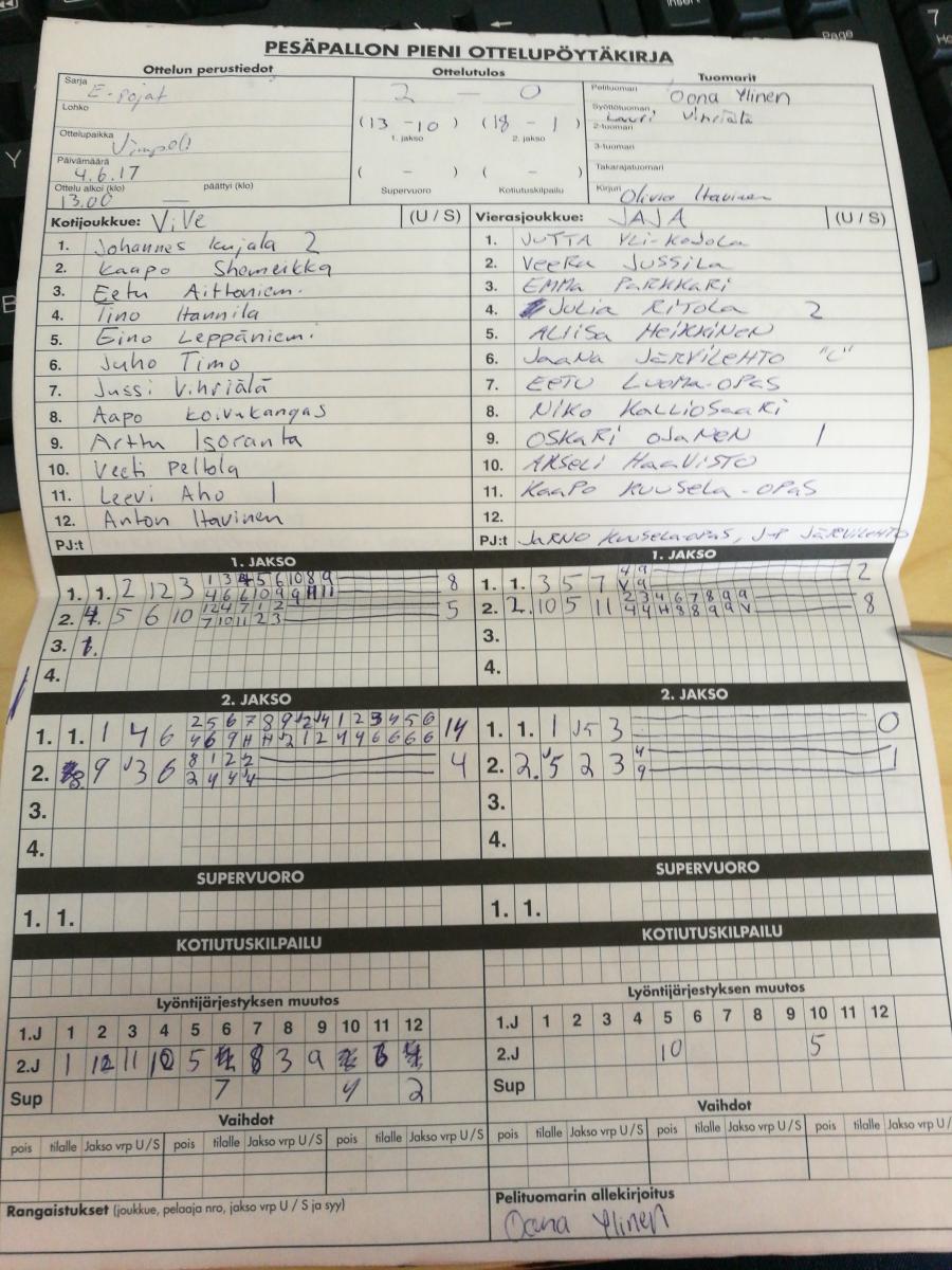 | 20.5.2017 18:00 | ViVe | JaJa | 2-0 (13-10, 18-1) | näytä | |