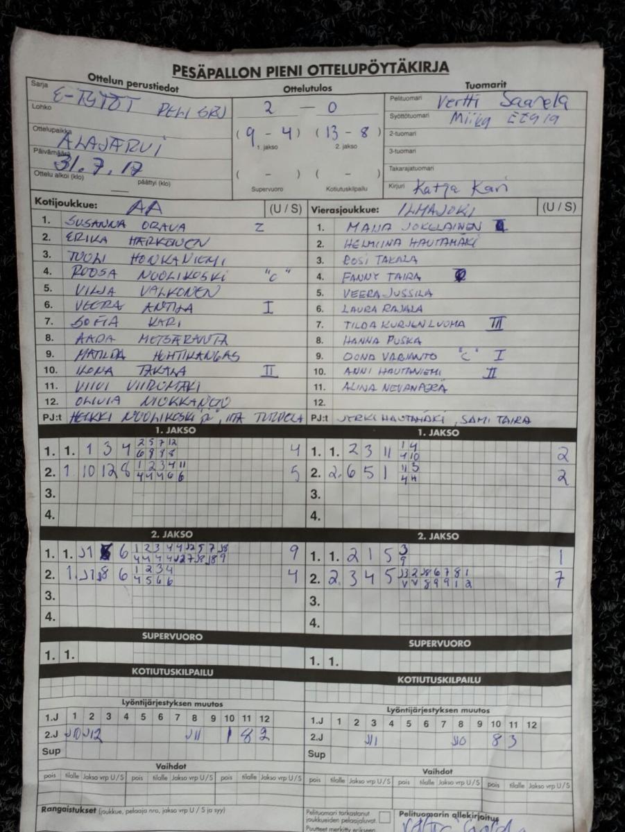 | 20.6.2017 18:00 | IK06 | APV | 2-0 (8-5, 12-8) | näytä | |