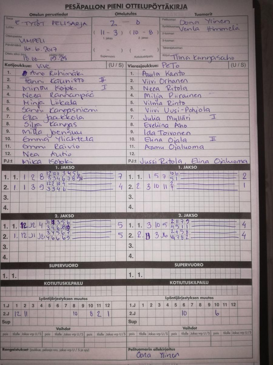 | 16.6.2017 18:00 | ViVe | PeTo06 | 2-0 (11-3, 10-8) | näytä | |