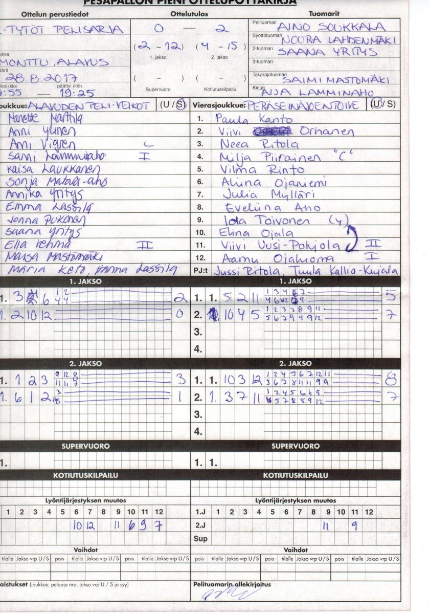 | 19.8.2017 12:00 | PeTo06 | VäVi | 1-2 (15-10, 8-10, 5-6) | näytä | |
