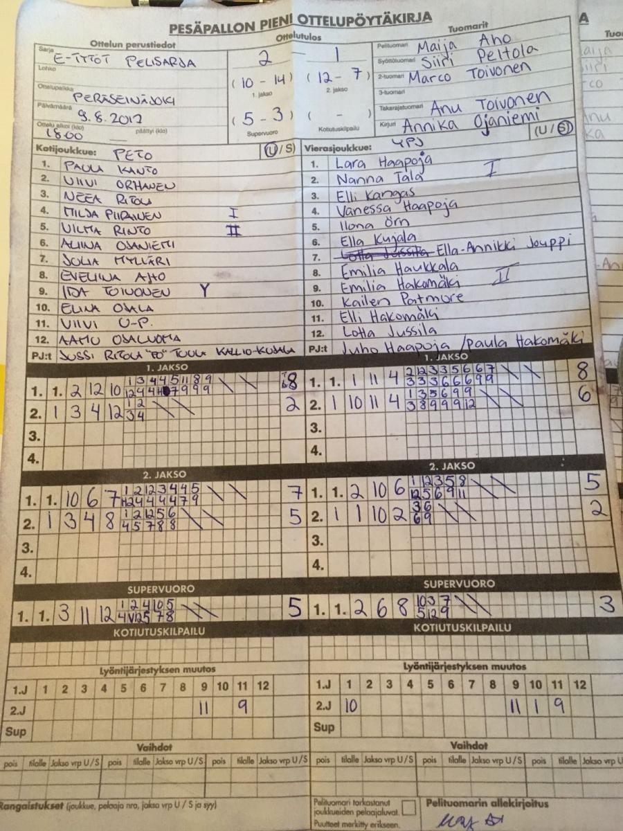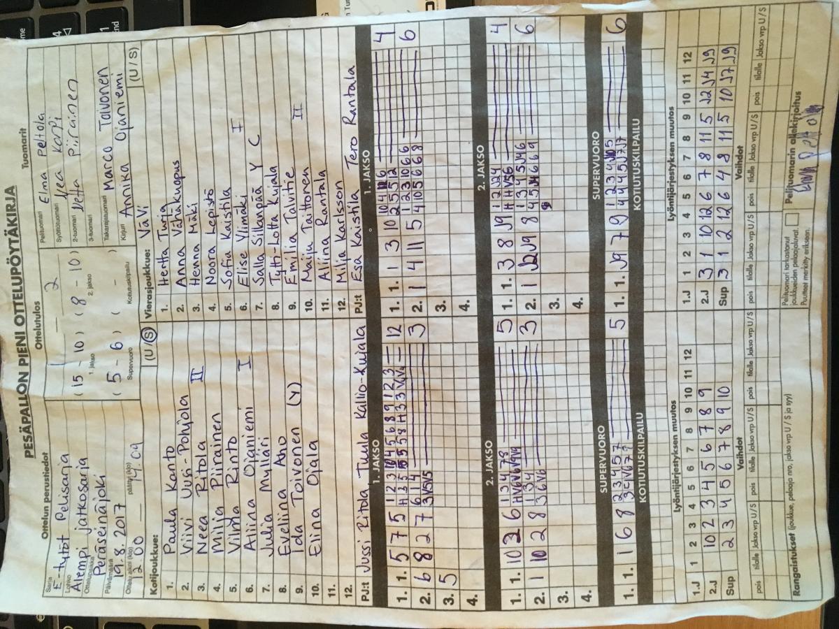 | 1.8.2017 18:00 | PeTo06 | YPJ | 2-1 (10-14, 12-7, 5-3) | näytä | |
