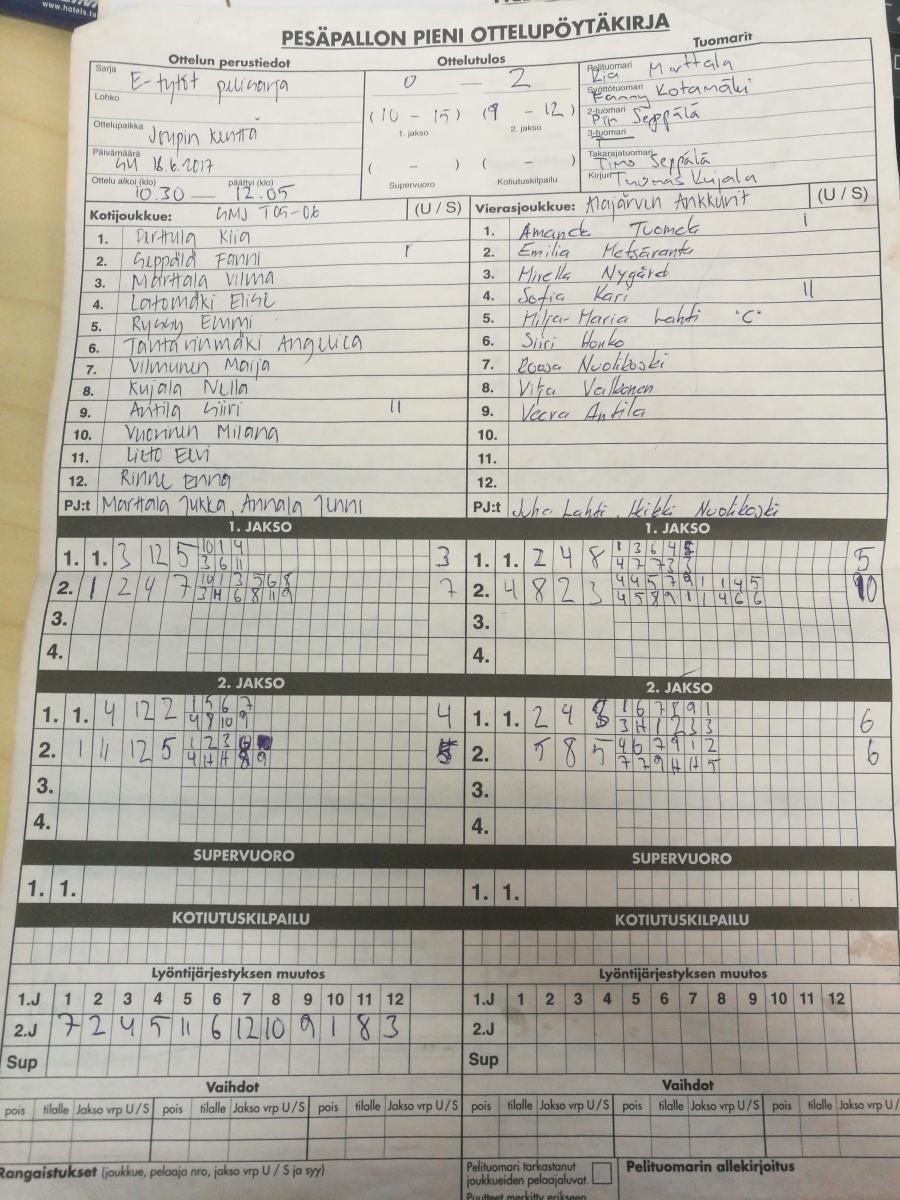 | 18.6.2017 10:30 | SMJ05-06 | AA | 0-2 (10-15, 9-12) | näytä | |