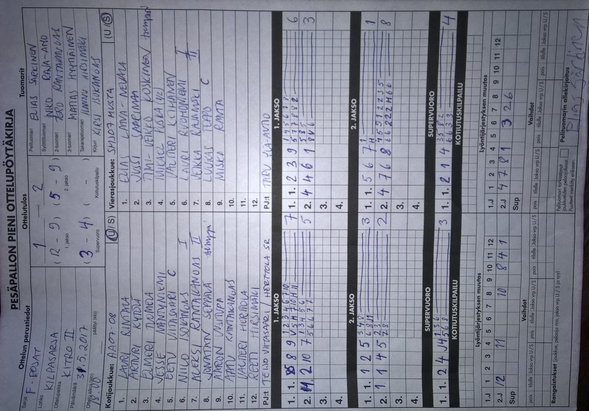 | 20.5.2017 18:00 | SMJ07 punainen | AA | 1-2 (8-11, 12-5, 2-4) | näytä | |