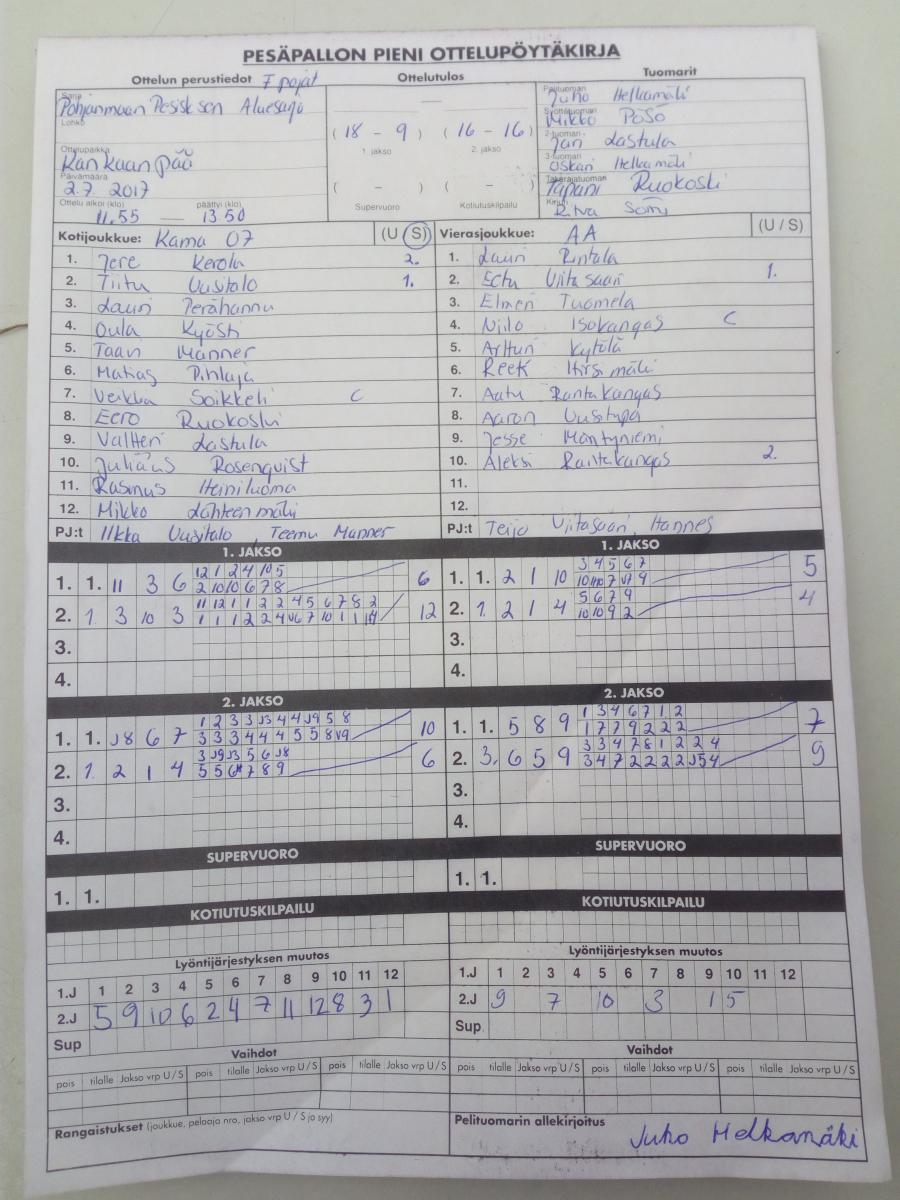 | 20.5.2017 18:00 | KaMa | AA | 1-0 (18-9, 16-16) | näytä |
