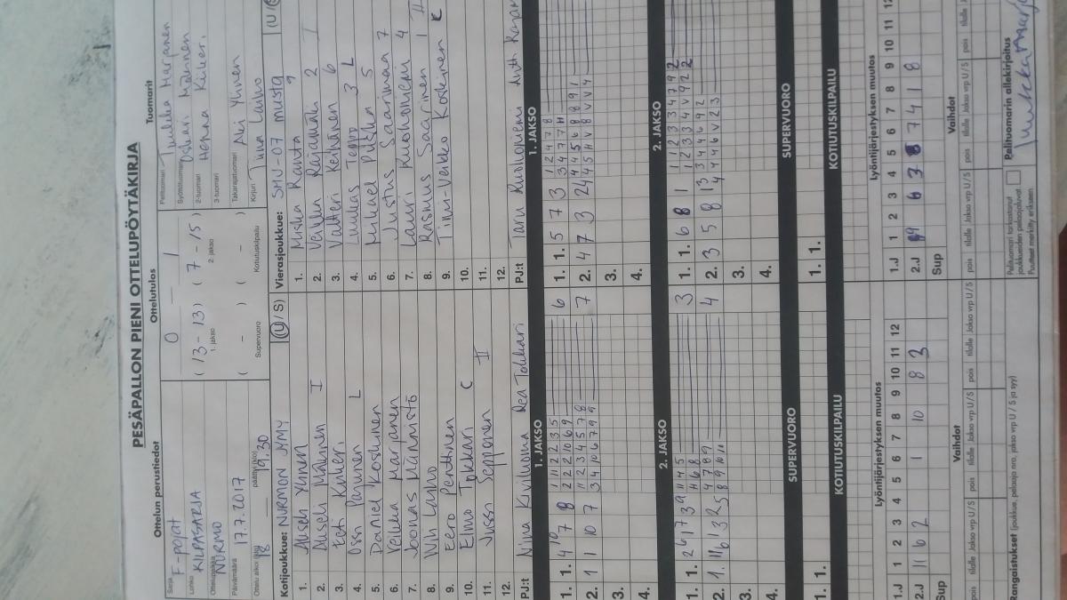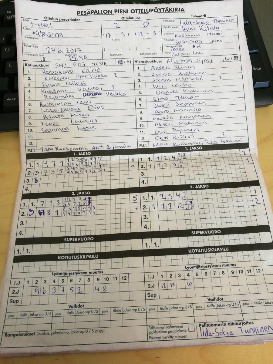 | 20.5.2017 18:00 | SMJ07 musta | NJ1 | 2-0 (17-3, 12-3) | näytä | |