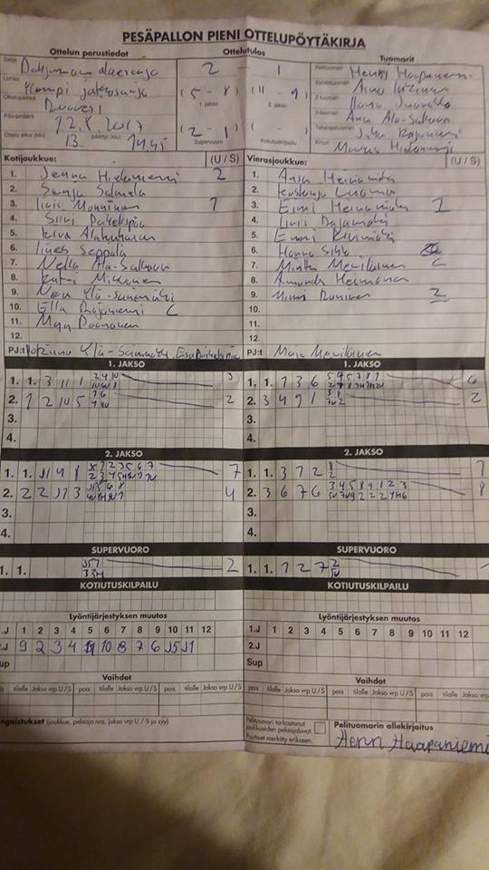 | 20.5.2017 18:00 | APV keltainen | SMJ08 punainen | 1-0 (10-6, 6-6) | näytä | |