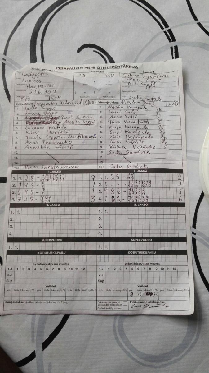 | 30.6.2017 | Haapavesi | Nivala | 12-20 | näytä | |